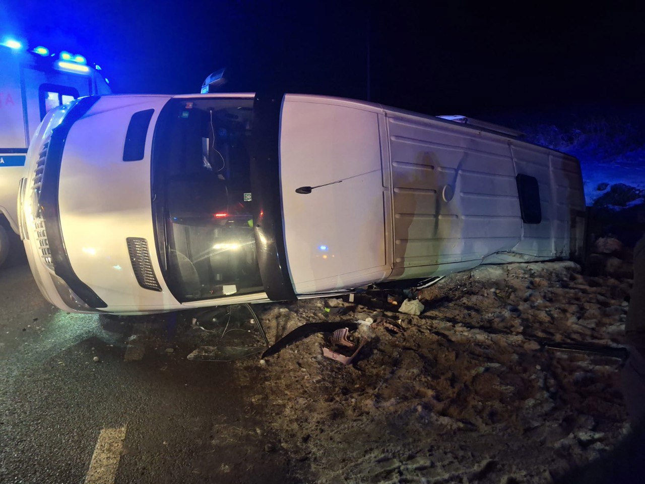 În urma impactului, microbuzul s-a răsturnat pe partea stângă, iar remorca pe care o tracta s-a răsturnat mai în față, pe același sens de deplasare. În interiorul vehiculului se aflau 11 persoane, iar panica produsă de accident a necesitat intervenția rapidă a echipajelor de urgență.