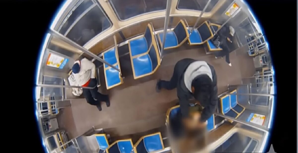 Imaginile de supraveghere arată momentul în care agresorul se apropie și comite atacul.