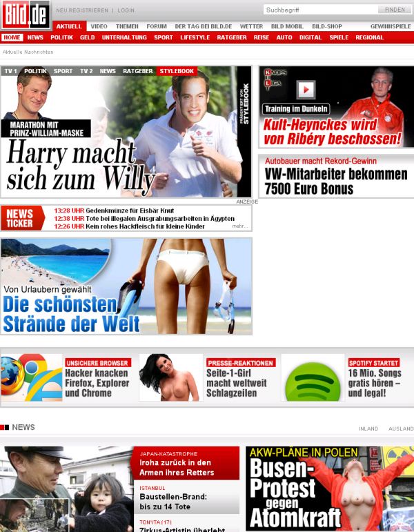 De-a lungul vremii, cotidianul "Bild" a publicat pe prima pagină fotografiile a peste 5.000 de femei tinere şi goale, începând cu 1984.