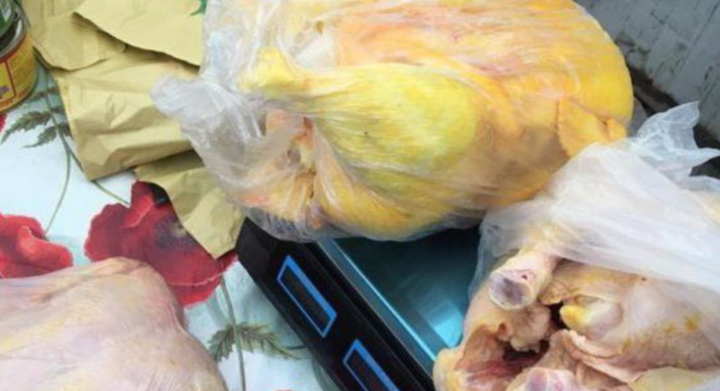 Comercianții care vopseau carnea de pui vindeau în Piața basarabenilor din orașul Galați. În urma unei razii, polițiștii au confiscat 12 kilograme de carne de pasăre pentru distrugere. Vânzătorii au fost amendați.