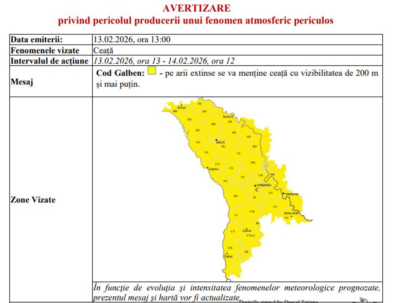 Sursa Foto: Dreamstime Republica Molodva. Meteorologii au extins codul galben de ceață, valabil pe întreg teritoriul Republicii Moldova, până pe 14 februarie, ora 12:00. Specialiștii avertizează că, în acest interval, în mai multe regiuni ale țării se va forma ceață densă, iar vizibilitatea poate scădea până la 200 de metri sau chiar sub acest nivel.
