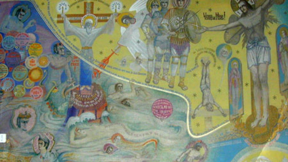 Codul lui Arsenie Boca la Drăgănescu. Adevărul despre pictura care pare să descrie tehnologia viitorului
