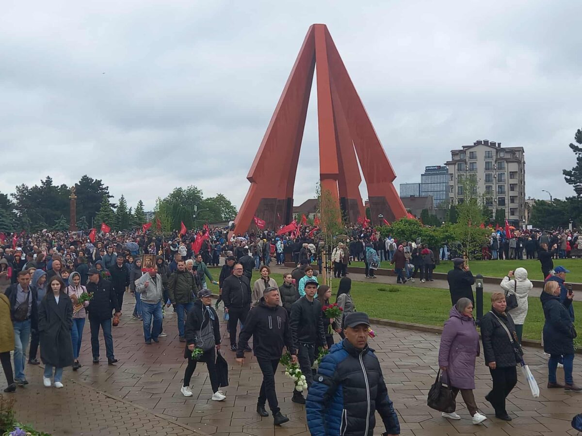 9 mai la Chişinău/ Sursa foto: EvZRepublica Moldova. Liderii mai multor partide pro-ruse de la Chişinău au fost alături în fruntea coloanei care a mers să depună flori la Complexul Memorial „Eternitate” din Chişinău. Aceştia au sărbătorit de 9 mai Ziua Victoriei.