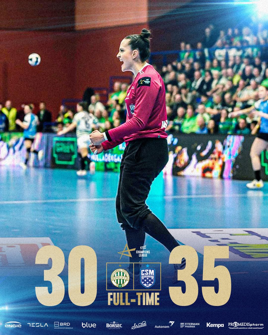 CSM București, victorie mare la Ferencvaros, scor 35-30. „Tigroaicele” mai au șanse de calificare
