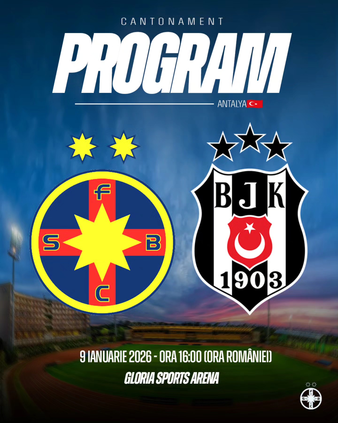 În timpul acestui cantonament, FCSB are programat un singur test de verificare, cu Beșiktaș, la data de 9 ianuarie.