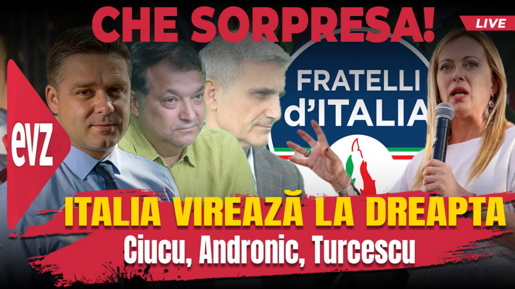 Italia e o ţară îndatorată până peste cap, Meloni e o admiratoare a lui Benito Mussolini, toată lumea se întreabă ce urmează. Preşedintele PNL Bucureşti, Ciprian Ciucu şi jurnaliştii Dan Andronic şi Robert Turcescu discută despre noul context european, dar deschid şi subiectul dureros al administrării Bucureştilor. De la 12.00, live, pe canalul de YouTube EVZ-Capital şi pe pagina de Facebook evz.ro
