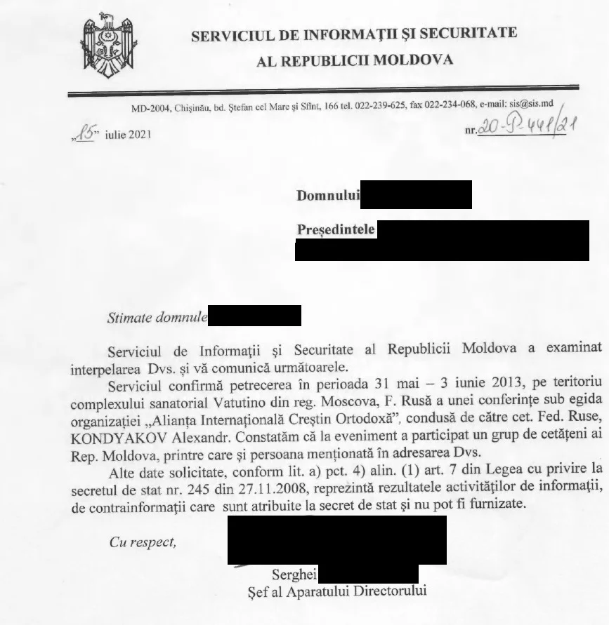 Informația despre participarea lui Vasile Costiuc la evenimentul din regiunea Moscova a fost confirmată de Serviciul de Informații al Republicii Moldova (SIS), potrivit unui document obținut de G4Media.