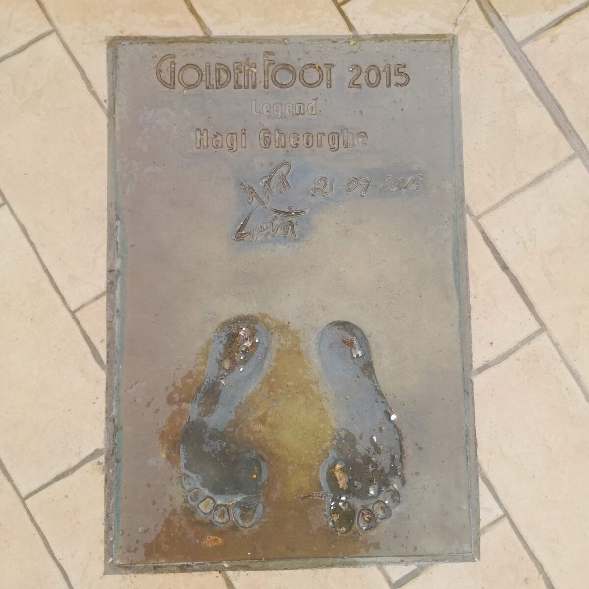 Placa omagiala a lui George Hagi de pe Golden Foot