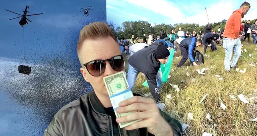 Un moment neobișnuit a devenit viral pe rețelele de socializare. Un producător, actor, influencer și vedetă de televiziune, Kamil Bartoshek, din Cehia, a aruncat dintr-un elicopter o sumă de un milion de dolari pentru persoanele aflate la sol.