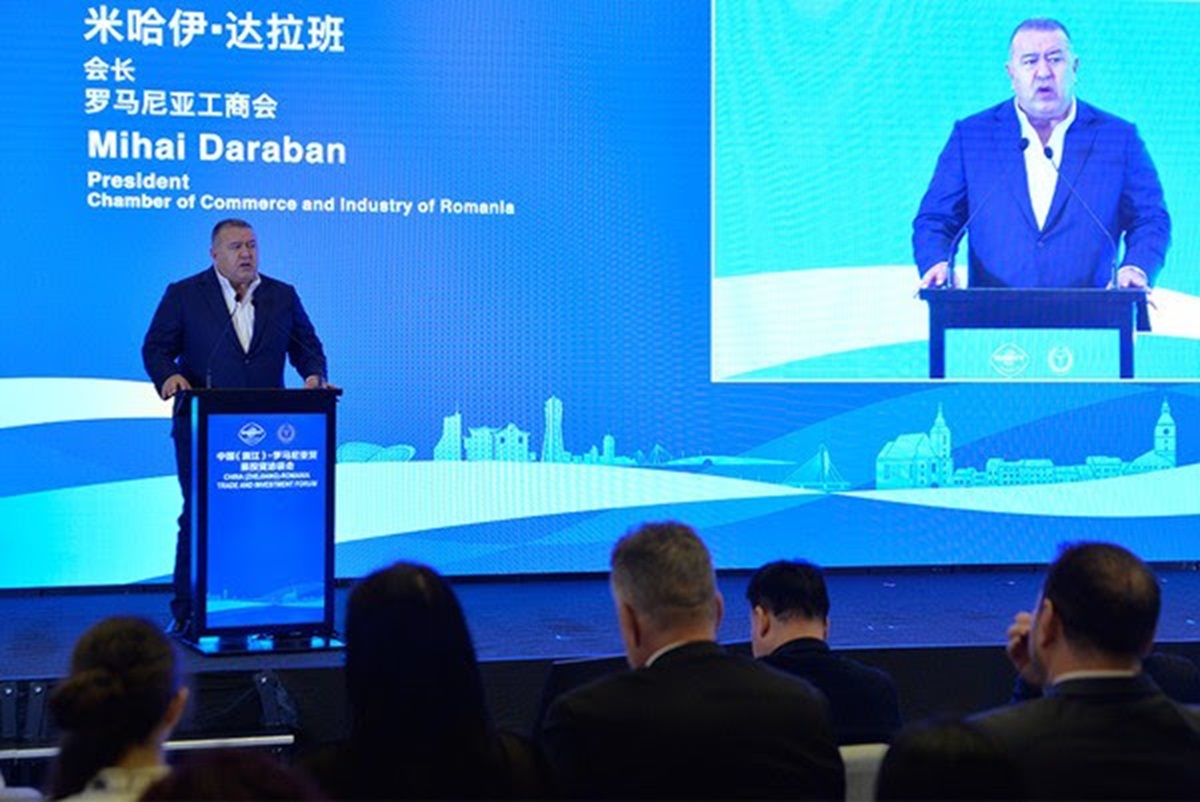 Președintele Camerei de Comerț și Industrie a României (CCIR), Mihai Daraban, a participat luni, 1 iulie 2024, la Forumul economic România – China, organizat de CCIR, alături de Consiliul Chinez pentru Promovarea Comerțului Internațional (CCPIT) al provinciei Zhejiang.
