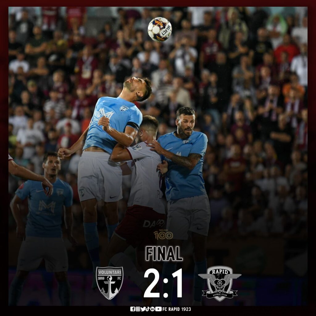 FC Voluntari a învins-o pe Rapid Bucureşti cu scorul de 2-1 (2-1), luni seara, pe teren propriu, în ultima partidă din etapa a patra a Superligii de fotbal.