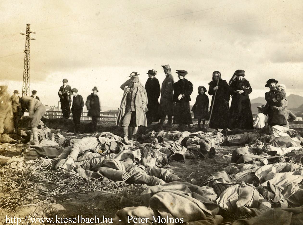 Imediat după luptă un ofiţer inamic a fotografiat linia de trăgători cu soldaţii români căzuţi.