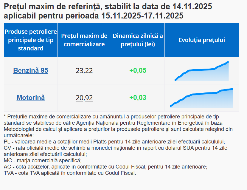La trei săptămâni după ce Biroul pentru Controlul Activelor Străine (OFAC) al Departamentului Trezoreriei SUA a anunțat sancțiuni împotriva companiilor ruse Rosneft și Lukoil, prețul benzinei a crescut cuaproximativ 70 de bani și a urcat la 23,22 lei per litru, iar motorina s-a scumpit cu 1,63 lei și a ajuns să coste 20,92 lei.