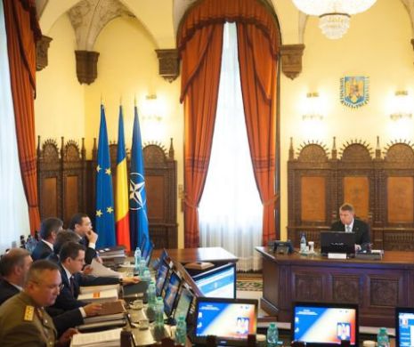 Administraţia Prezidenţială a informat, miercuri seară, că pe ordinea de zi a şedinţei CSAT sunt incluse subiecte referitoare la planul de implementare a Strategiei Naţionale de Apărare a Ţării pentru perioada 2015 - 2019, intensificarea fenomenului imigraţionist la frontiera României şi măsuri privind gestionarea situaţiei, Carta Albă a Apărării şi Strategia Naţională de Ordine şi Siguranţă Publică 2015 - 2020.