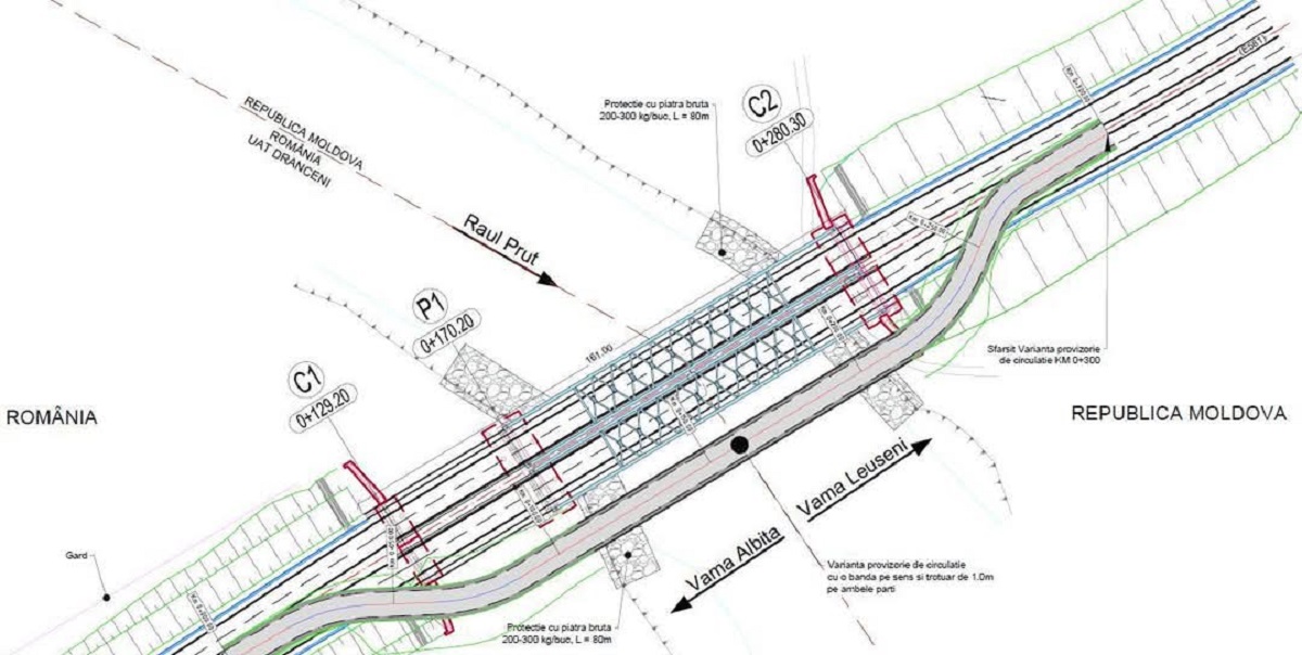 În vederea atingerii obiectivelor menționate anterior, pe perioada realizării lucrărilor de amenajare a podului peste râul Prut de pe DN24B la km 42+092 între Romania și Republica Moldova, traficul se va desfășura pe o variantă provizorie”, a susținut directorul executiv al APM Vaslui, Mihaela Budianu.