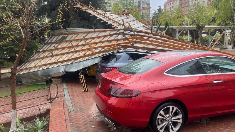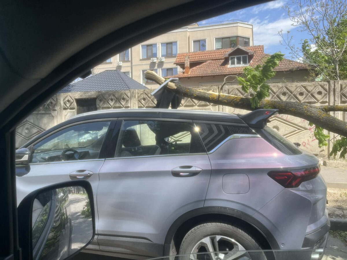 Mai multe maşini au fost dustruse de crengile groase, rupte de vânt. Pe strada Academiei din Chişinău, un automobil a fost distrus de o creangă. Creanga a spart acoperişil şi distrus parbrizul. După cum arăta maţina, dacă cineva s-ar fi aflat în salon ar fi avut puţine şanse de supravieţuire.