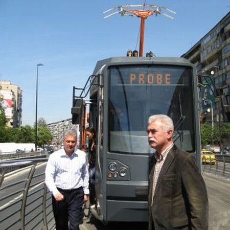 Un prototip de tramvai cu podeaua joasă, pe care uzina de reparaţii a RATB l-a copt un an de zile, a ieşit ieri pe porţile depoului, cu tot cu primar, directori şi ziarişti. Destinaţia: Pasajul Obor, proaspăt finisat, apoi terminalul Sfânta Vineri, aşijderea. Toate bune şi frumoase dacă n-am fi fost în România. Unde un şofer a parcat maşina fix pe linia de tramvai, iar nişte „Dorei“ de la semafoare au tăiat chiar atunci firul de alimentare cu electricitate. Din greşeală. Un tramvai dorit şi de canadieni Dincolo de ghinionul inaugural, rămâne totuşi realizarea oamenilor regiei de transport, care au reuşit să facă, din nimic, un prototip de tramvai pe care muncipalitatea ar fi fost gata, acum un an, să dea două milioane de euro, dacă l-ar fi cumpărat de la străini. „Chiar canadienii de la Bombardier s-au arătat interesaţi să ne cumpere prototipul, dar evident nu-l vindem. Vrem să obţinem un credit de patru milioane de euro ca să facem aici o linie de fabricaţie“, promite Videanu pe mandatul viitorului primar.