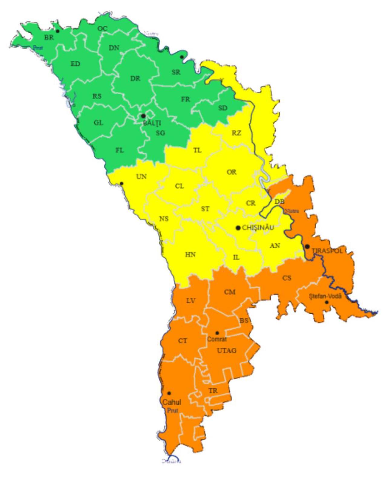 Potrivit Serviciul Hidrometeorologic de Stat, nivelul de pericol a fost revizuit după actualizarea datelor meteorologice. Inițial, nordul țării se afla sub Cod galben, iar centrul și sudul – sub Cod portocaliu. În urma recalibrării, Codul portocaliu rămâne valabil pentru sud, centrul este sub Cod galben, iar nordul revine la Cod verde.
